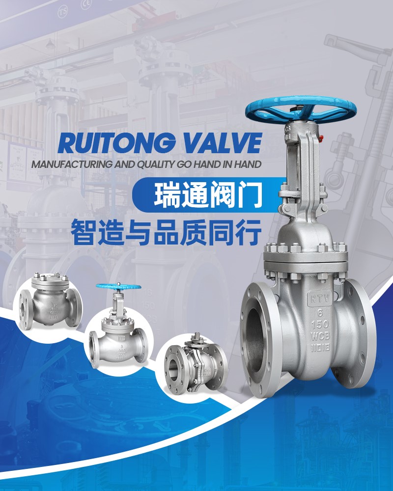 浙江瑞通閥門有限公司坐落于龍灣溫州東部溫洲灣新區永興街道空港新區,榮獲國家高新技術企業。產品通過ISO9001質量管理體系認證,ISO14000環境管理體系認證,ISO14500職業健康管理體系認證,特種設備壓力管道TS認證,歐盟CE認證,GOST等證書;公司用大型加工中心,數控立車,數控臥車以及自動焊接和自動化加工設備;是一家集鑄造、設計、研發、生產、銷售服務一體的的閥門制造企業。